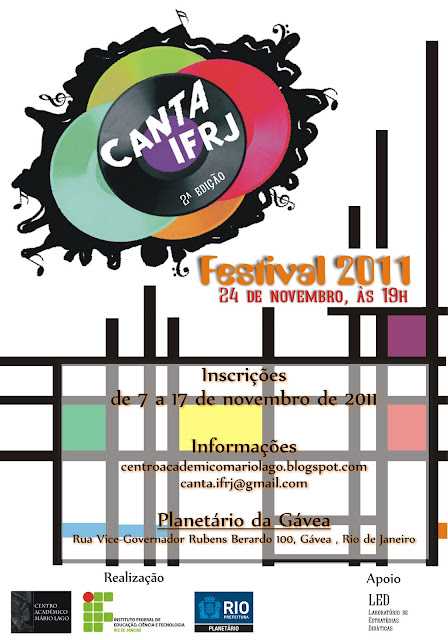 O II Canta IFRJ – Festival 2011, atividade cultural, de abrangência estadual, será promovido pelo Centro Acadêmico Mário Lago, em parceria com a Reitoria do IFRJ, com apoio das entidades culturais da região onde a instituição está